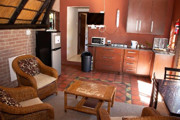 The Lapa is a fully equipped self-catering unit with a braai facility. The Lapa consists of a bedroom with two single beds and a beautiful bathroom with a bath and shower. The other room serves as a kitchenette with a sitting room with two single beds. A mattress is available for a child to sleep on. Own DStv and private entrance with small garden. It uses the same bathroom.